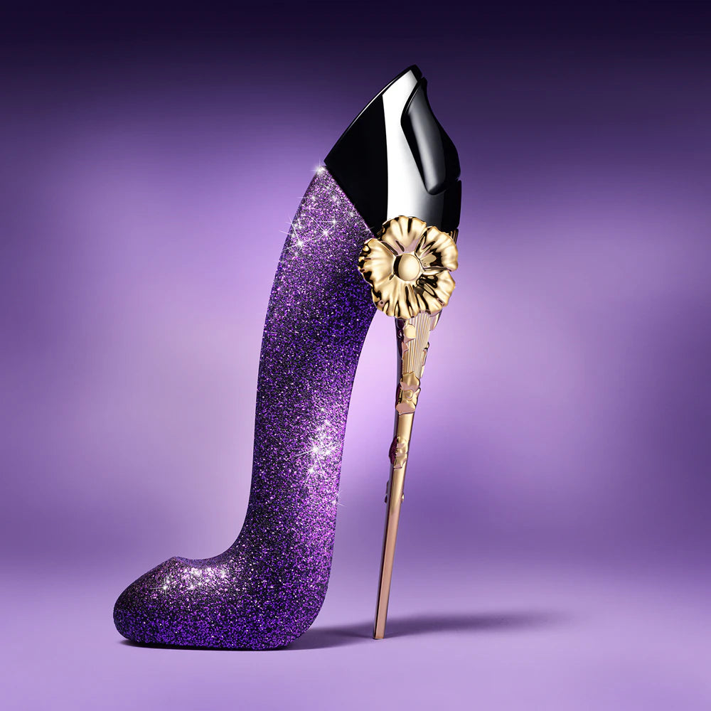 Magisch en mysterieus, Good Girl Dazzling Garden is gekleed in diep metallic paars dat glinstert als de nachtelijke hemel en is afgewerkt met een bloeiende gouden bloem – onze eerste stiletto met accessoires.